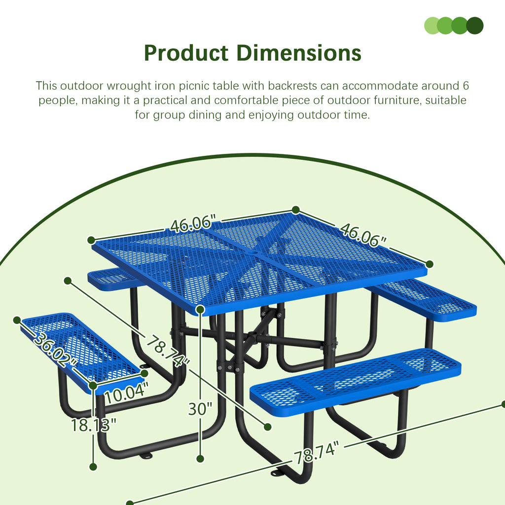 46'' Square Outdoor Commercial Steel Metal Picnic Table Set, Blue